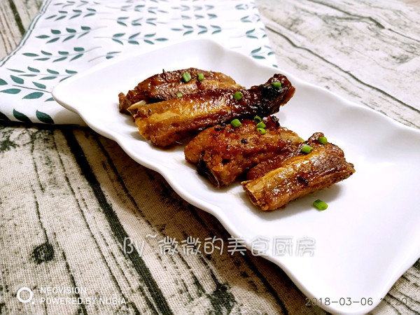 把酱汁倒在肋排上,每块肋排都要被酱汁包裹住,盖上保鲜膜放冰箱冷藏,一个小时以上,若冷藏到第二天再烤会更入味。