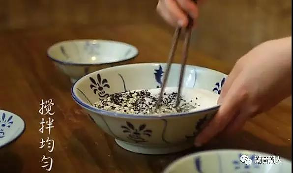 把芝麻也倒入装花生碎的碗里,再加入白糖,搅拌均匀