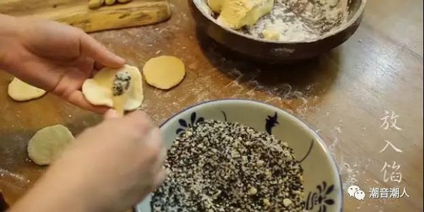 接着把面团揉成揉成一颗颗的丸状,再撵成薄皮状