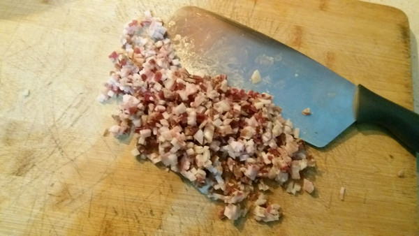腊肉丁煸出油,加茴香、适量草果粉,炒熟。