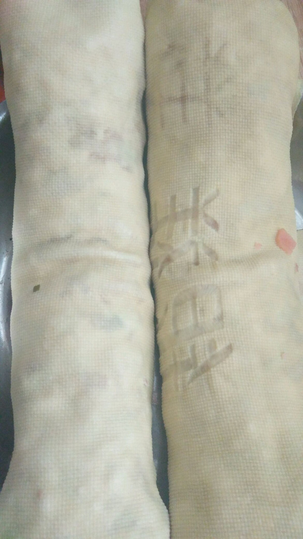 切点葱花和肉拌在一起涂抹在千张上铺平,不要太厚均匀平整
