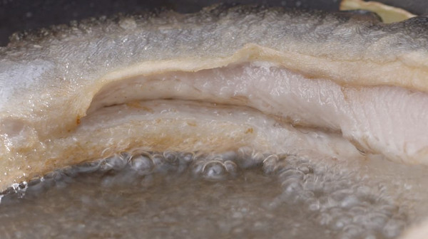 油锅烧热到七成,下姜片,放入河鳗两面炸至金黄定型,20个蒜粒也要炸至金黄;