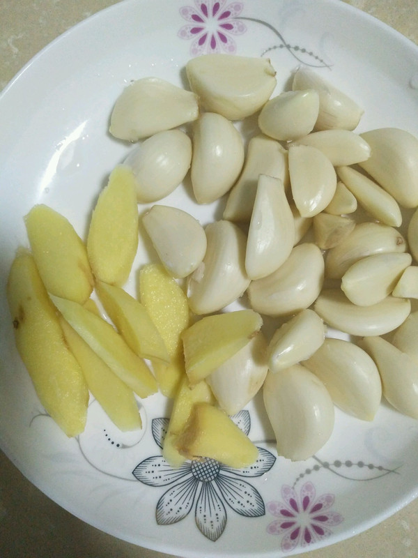 姜切片,蒜掰好,装盘备用。