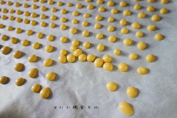 烤盘铺上油纸,一个个挤上去,大概黄豆大小就可以了
