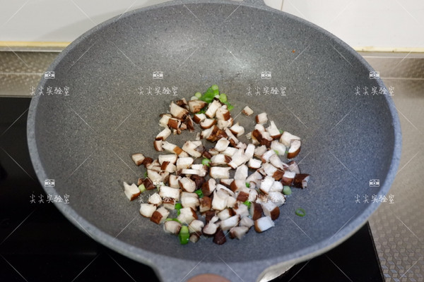 加入米饭,用锅铲边压边翻炒,迅速将米饭炒散