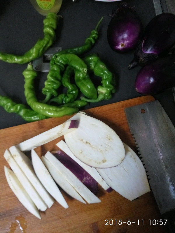 辣椒抄七八分熟,倒入蒸好的茄子,盐,老抽,生抽调味,调色!