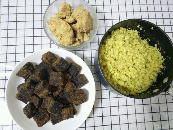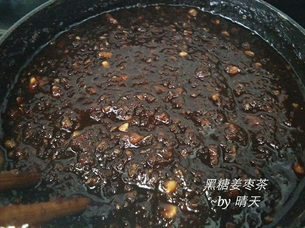 姜打成姜绒,红枣,枣片磨粉, 3样放一起加适量水,开火烧开, 改小火,边熬边搅。
