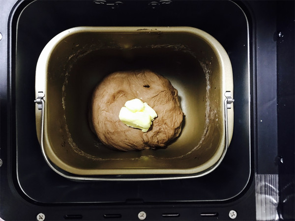 再加入软化的黄油继续搅拌,面团变得细腻、光滑、切一小块面团,能轻松的拉出透明有弹性的手套膜,破洞边缘光滑的扩展状态