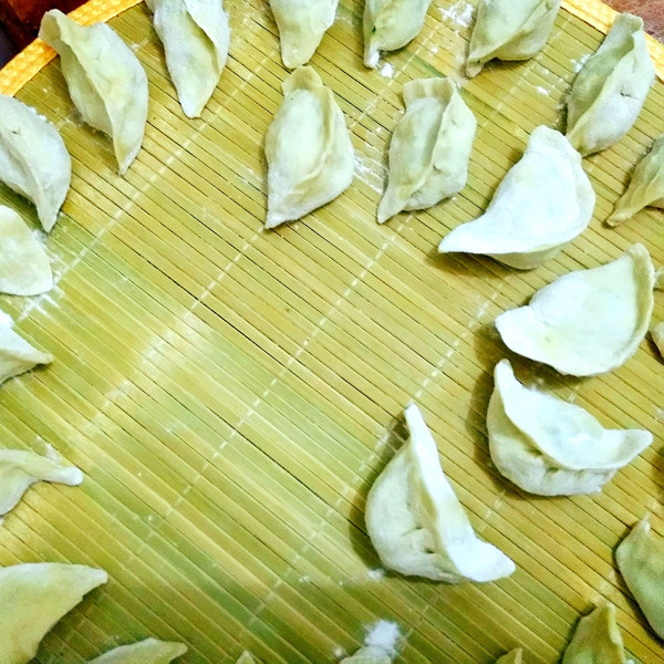 醒过的面揉成面剂,切小段擀成饺子皮,包馅儿挤成自己随意的饺子型就可以了。