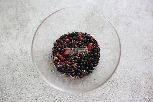 加入清水清洗1遍沥干水份,黑米洗出来水的颜色是黑色的,不需要洗太多次,以免营养流失。