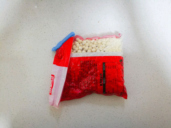 煮熟珍珠圆粉之后把珍珠圆粉捞出盛入玻璃杯之中。微波炉加热牛奶,倒入盛有珍珠圆粉的玻璃杯之中。