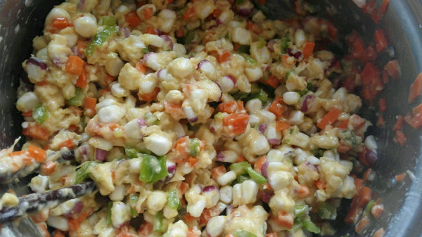 这是我调的一个料汁,儿子喜欢蘸着吃,好这口的也可以调一个,其实就那样吃也是很滋味的了