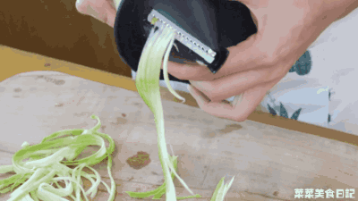 西葫芦洗净,去蒂擦丝 如果没有擦丝器的话,也可以直接用刀先切片,再切丝