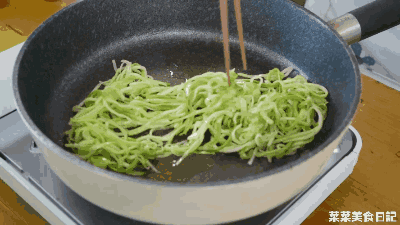 起锅热油,倒入挤去水的西葫芦丝,小火翻炒3分钟