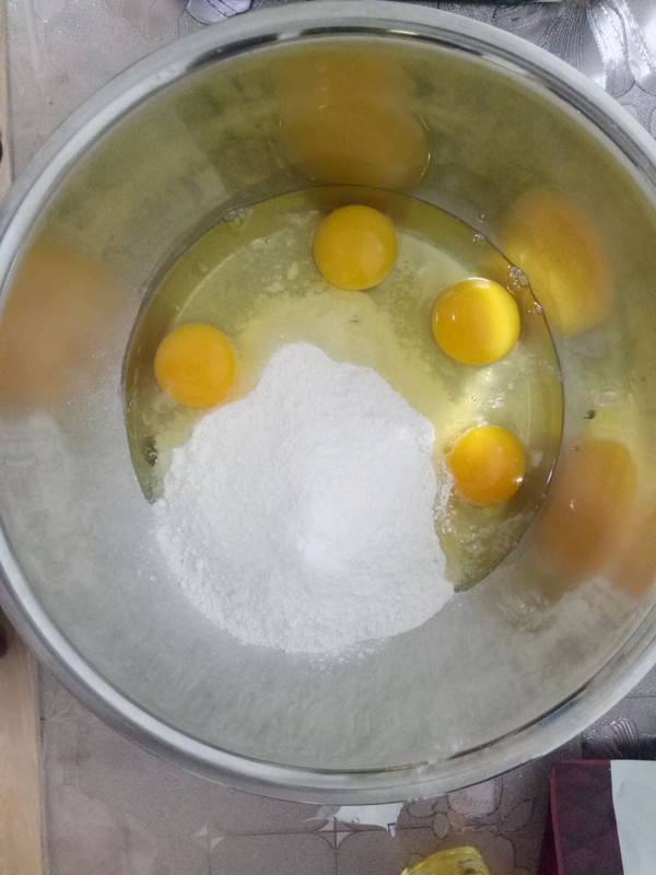 倒入预拌粉、鸡蛋、水