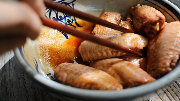 放入鸡翅,加入适量盐,加入70克葡萄酒、20克白糖