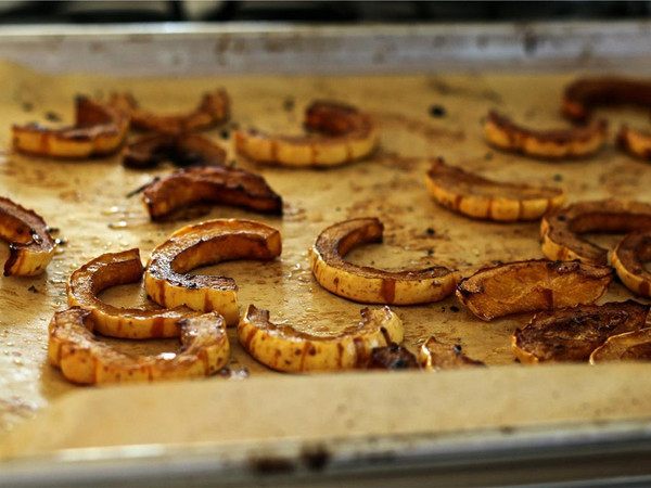 放入烤箱,烤20~25分钟,中途翻面,烤至南瓜变软并且包裹上焦糖。
