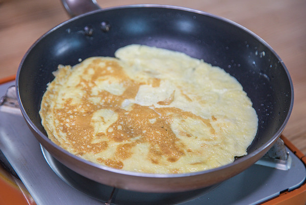鸡蛋液打散,准备一个平底不粘锅摊成蛋皮。