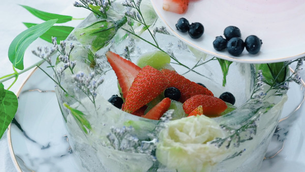 把冻好的水果放入冰碗中,就可以开吃啦!