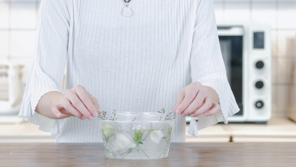 放入冰箱冷冻过夜,直到凝固成冰。