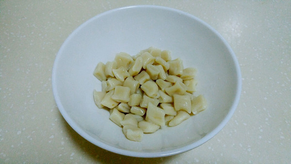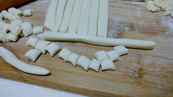 就,提前用凉水和出一坨偏硬面团,擀开切条切粒粒