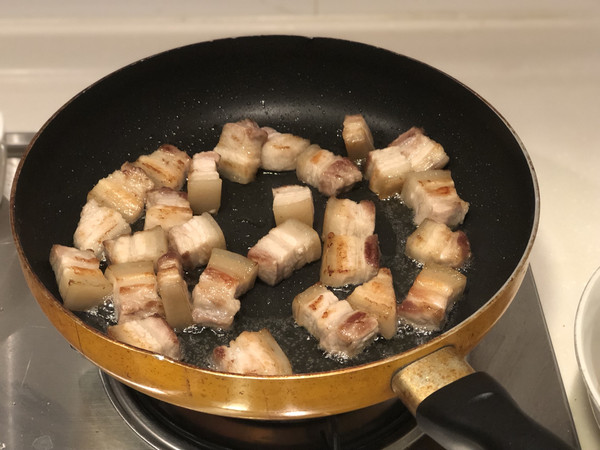 锅中放一点点油,烧热后加入肉块煎至表面金黄后盛出备用