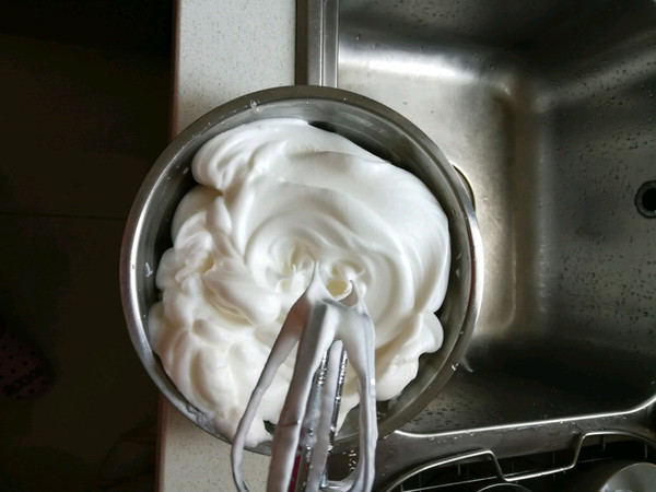 打发的蛋清分三次加入搅拌均匀,像炒菜一样搅拌