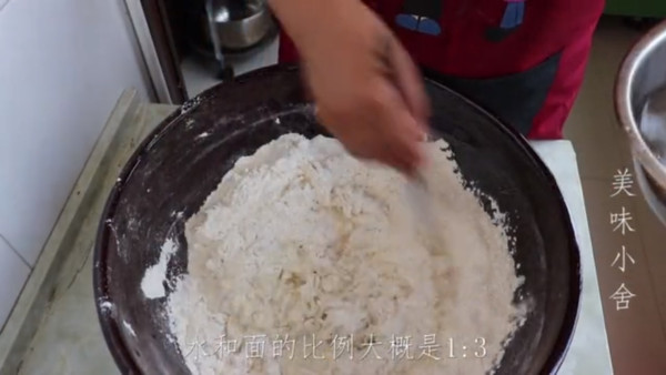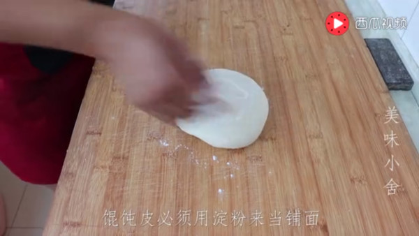 开始切,折合处切混沌皮一半大,展开当尺子切剩余面