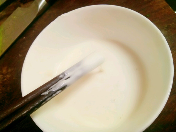 一点一点放水搅匀面糊,用筷子挑起成线状滴落即可,不要太浓稠也不要太稀。