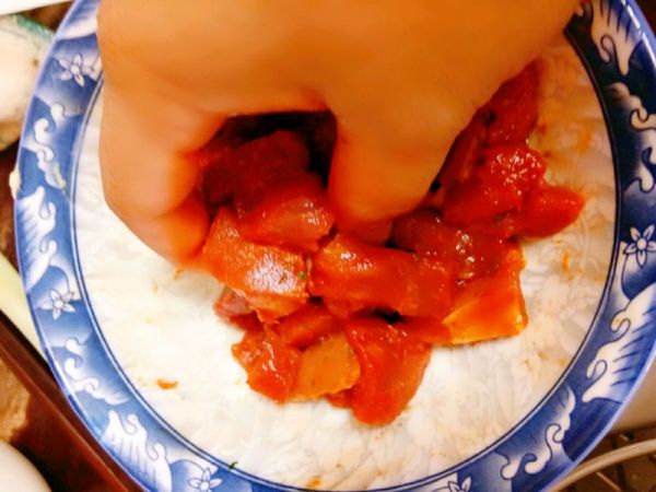 倒适量腌料在肉中。根据自己的口味,适量增减腌料的量。