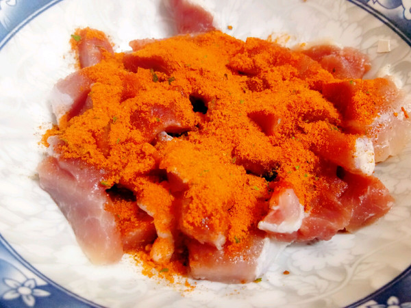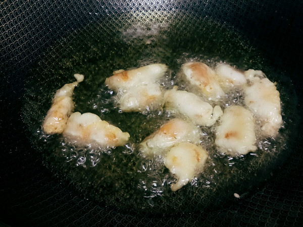 放入锅中用中小火炸至肉段变色。