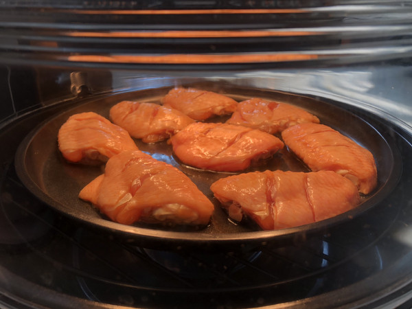 10分钟后,将鸡翅翻面,180度,再烤8分钟