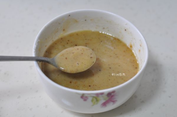 做油酥的60克面粉中放入五香粉,拌匀,然后烧热油,浇进去制成油酥,晾凉后加入盐拌匀。