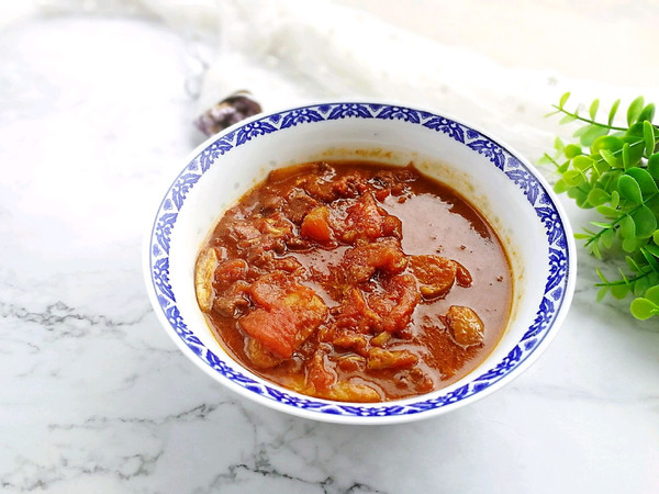 番茄倒入牛肉里,大火再煮开,转小火闷煮汁牛肉熟烂