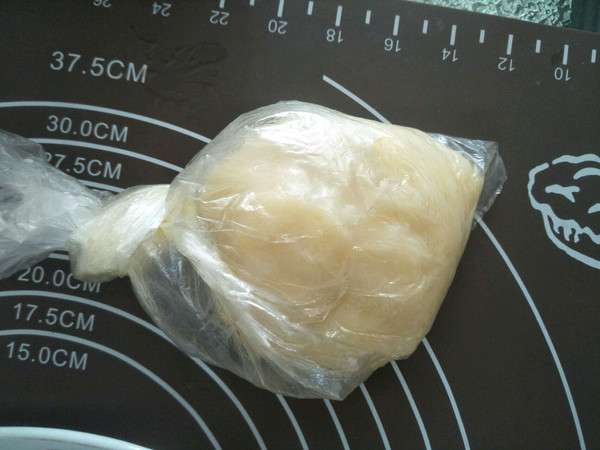 将揉好的面团放入保鲜袋放冰箱冷藏半小时。