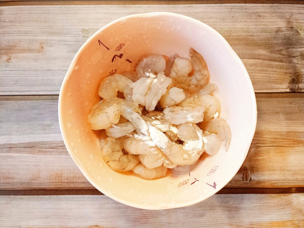 热锅注油,油温烧至五成热,放入虾仁翻炒