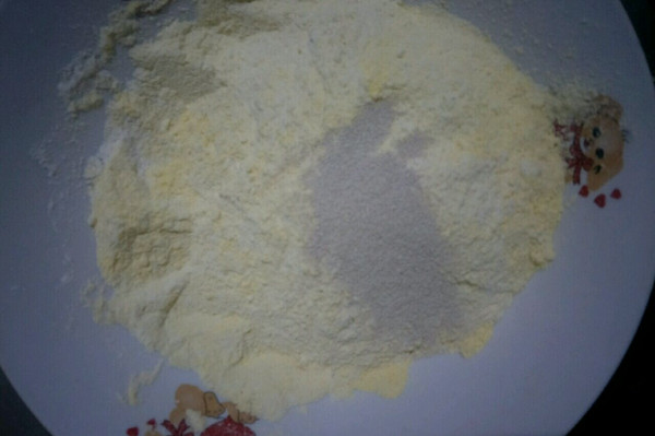 首先把玉米面,普通面粉,白糖放在一起搅拌均匀