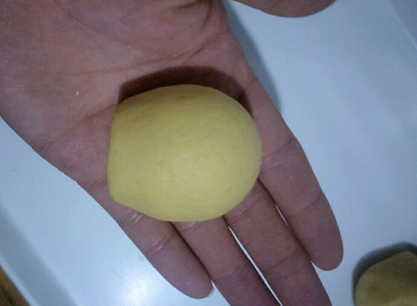 取一个面团继续揉搓,搓圆,搓成馒头状