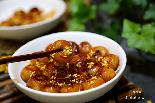 我是十月份做的刚好有新鲜的桂花就丢了些进去 没有的话干桂花也行 最好是桂花蜜, 每年到桂花出来时候都要腌制一些 最快的方法就是干桂花和蜂蜜一个晚上也可以
