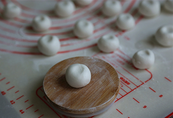 揉好的糯米面团分成一个个小剂子,然后搓成圆球 用大拇指轻轻按压