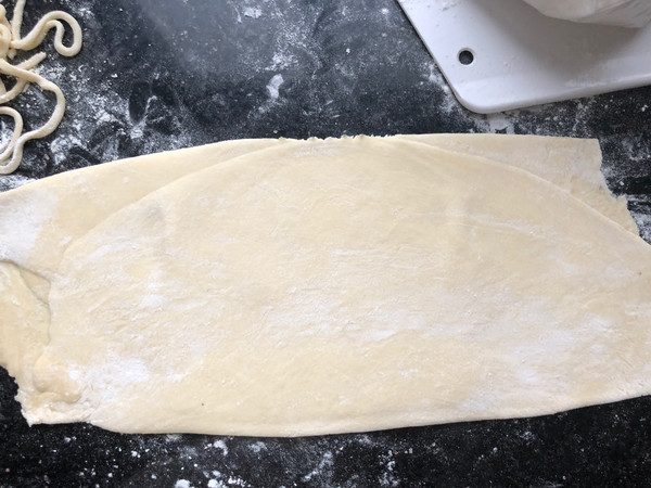 将面团擀开,也可以用压面机 压面机选择厚度最大档