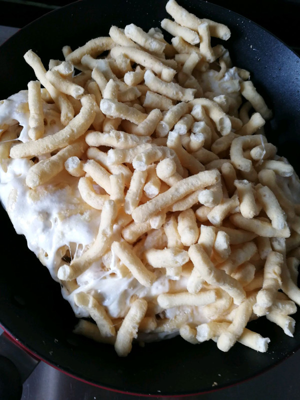 第一步:黄油放入不粘锅,小火溶解成水。(控制火候不能烧糊)