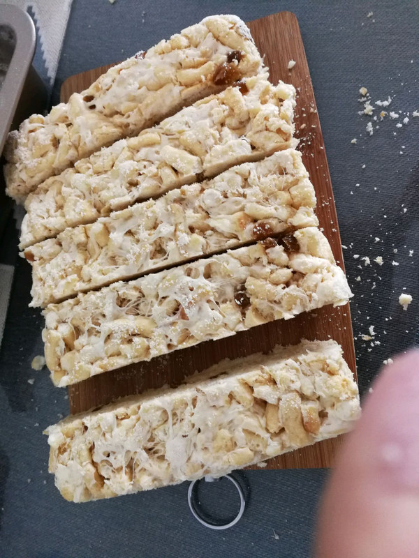 沙基玛条:100g 棉花糖:150g 黄油:30g 奶粉:30g 葡萄干(适量)