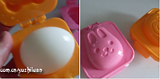 鸡蛋模打开,放入鸡蛋,合上,扣好锁扣!等到鸡蛋放凉的时候,打开鸡蛋模拿出鸡蛋,就成了这样非常可爱,灰常卡哇伊的卡通蛋了!也绝对的能勾起小朋友的兴趣