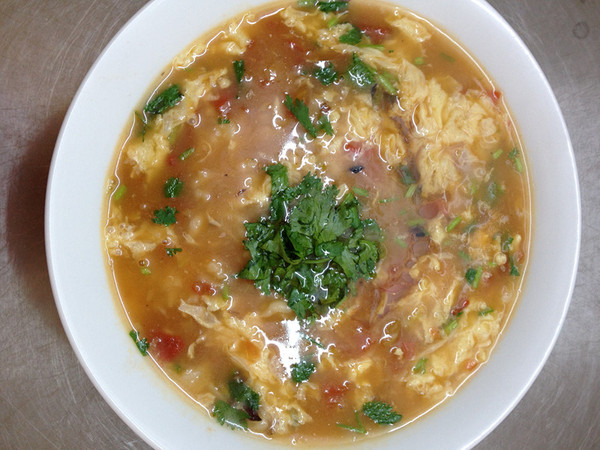 西红柿炒出红油后加入热水烧开下入调味料和面疙瘩
