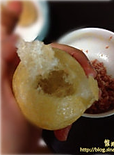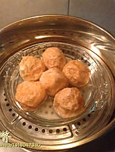面筋小心地挖一个小洞,把肉馅塞进去,盖上原先挖出来的盖子。