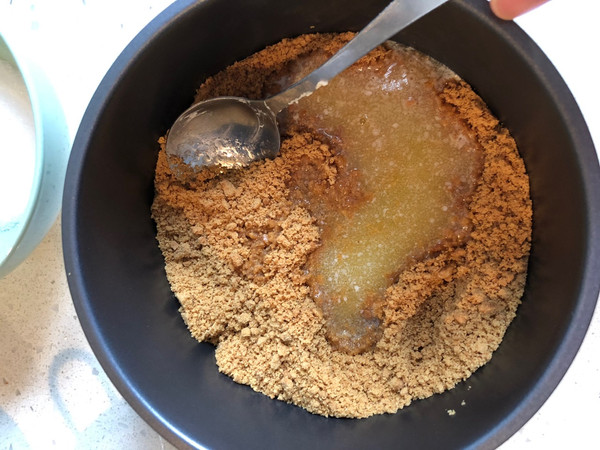 把碎饼干倒入磨具。与融化的黄油搅拌。