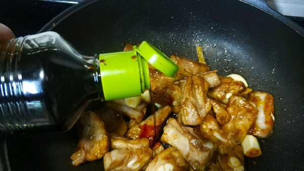 倒入排骨翻炒上色