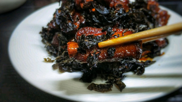 趁热将茶叶放在排骨上