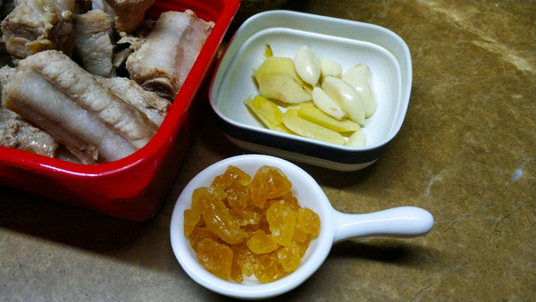 冰糖、姜切片、蒜粒备用